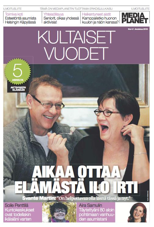 Kultaiset vuodet Posted on 15.1.201125.2.2025by minnavaltari Helsingin Sanomien välissä ilmestyneen Kultaiset vuodet -julkaisun jutut nyt luettavissa netissä. Mieli virkeäksi ja kroppa kuntoon! s. 4-5Laadukkaat yöunet ja rento mieli s. 14 Lue myös: Miten pieni putiikki voi hyödyntää verkon puskaradiota? Facebookin aikajana-uudistuksen haasteet ja mahdollisuudet -koulutus Mania-lehdessä Alakertajuttu Turun Sanomissa